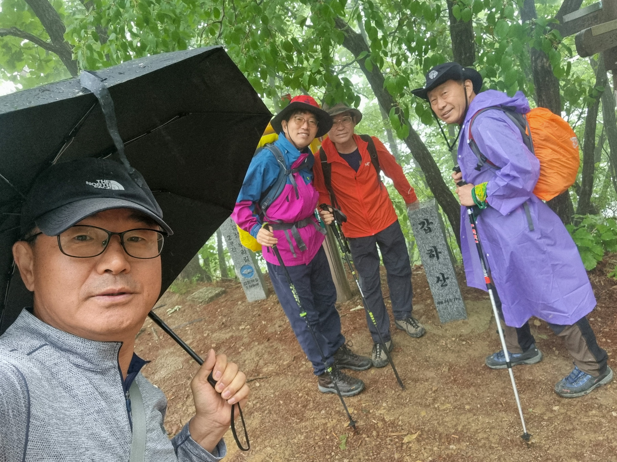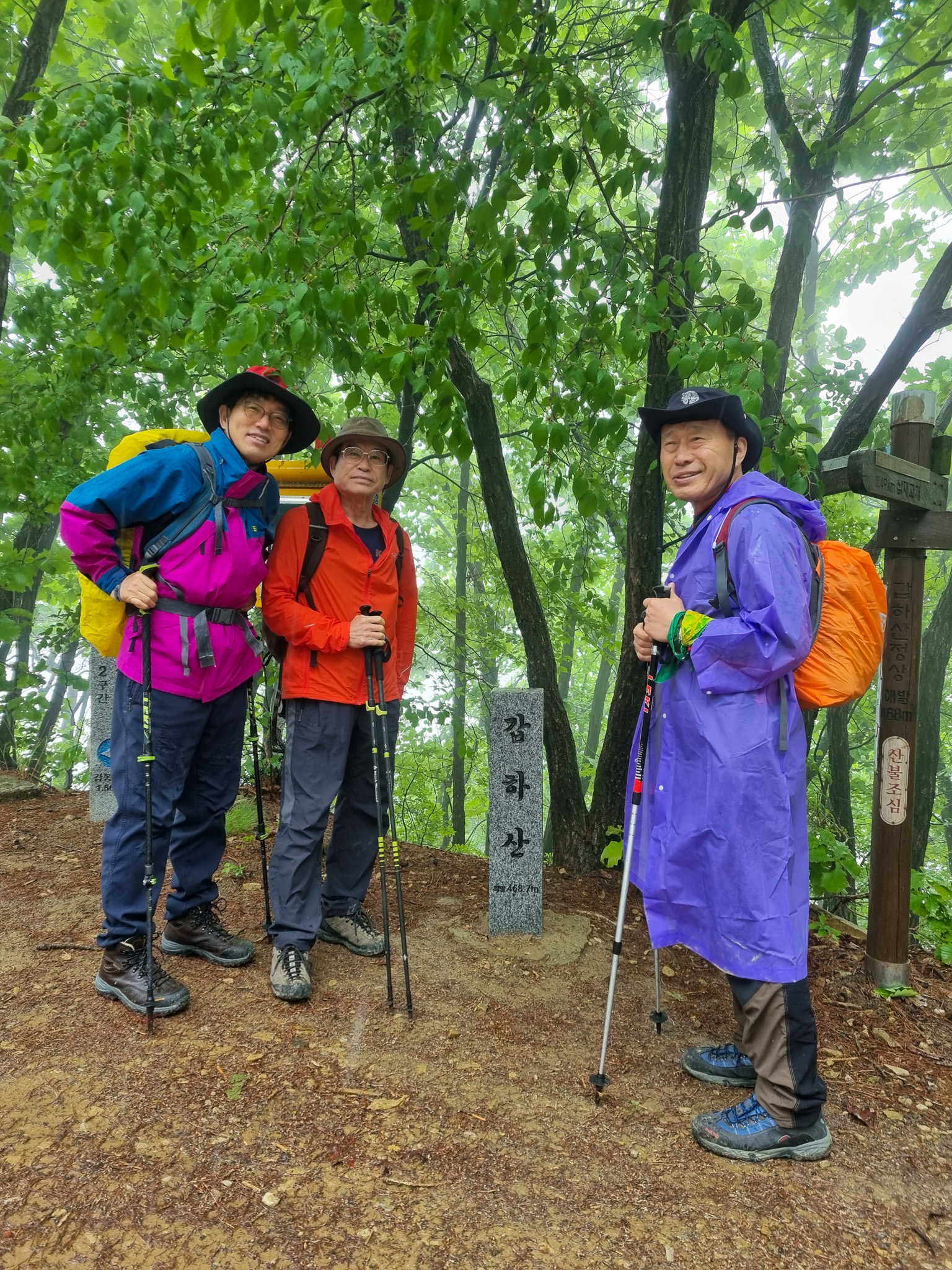 갑동에서 갑하산으로 올랐다가 갑동으로 다시 내려오는 산행이었습니다. 산행 전에는 가랑비가 조금씩 내렸었는데 빗방울이 점점 더 굵어지더군요.